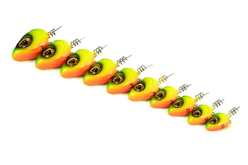Джиг глава Fox Rage Slick Pelagic Heads – Lemon Tiger – Подобрете презентацията и визията на вашия силикон с джиг глава Fox Rage Slick Pelagic Heads. Подходяща за pelagic риболов. Представянето на вашата примамка директно пред сома или бялата риба е ключът към успеха в пеладжик риболова, а тези джиг глави са проектирани да осигурят прецизност и контрол във всяка ситуация. Главите са с 3D реалистични очи. Оборудвани със здрав тирбушон за сигурно закрепване на вашия силикон. Цената е за 1бр. джиг глава!
