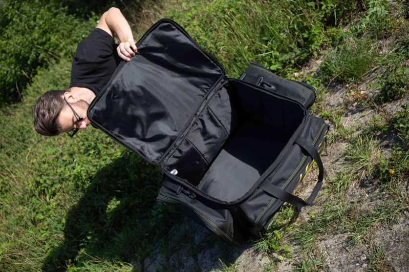 Сак Black Cat BLCK Holdall – Large – Голям и много удобен сак, който ще побере най-необходимите ви риболовни аксесоари. Сакът разполага с три външни джоба и много здрави скоби за захващане на презрамката. Изработен от издръжлив 500D и 300D материал. Размери: 76х48х30см.